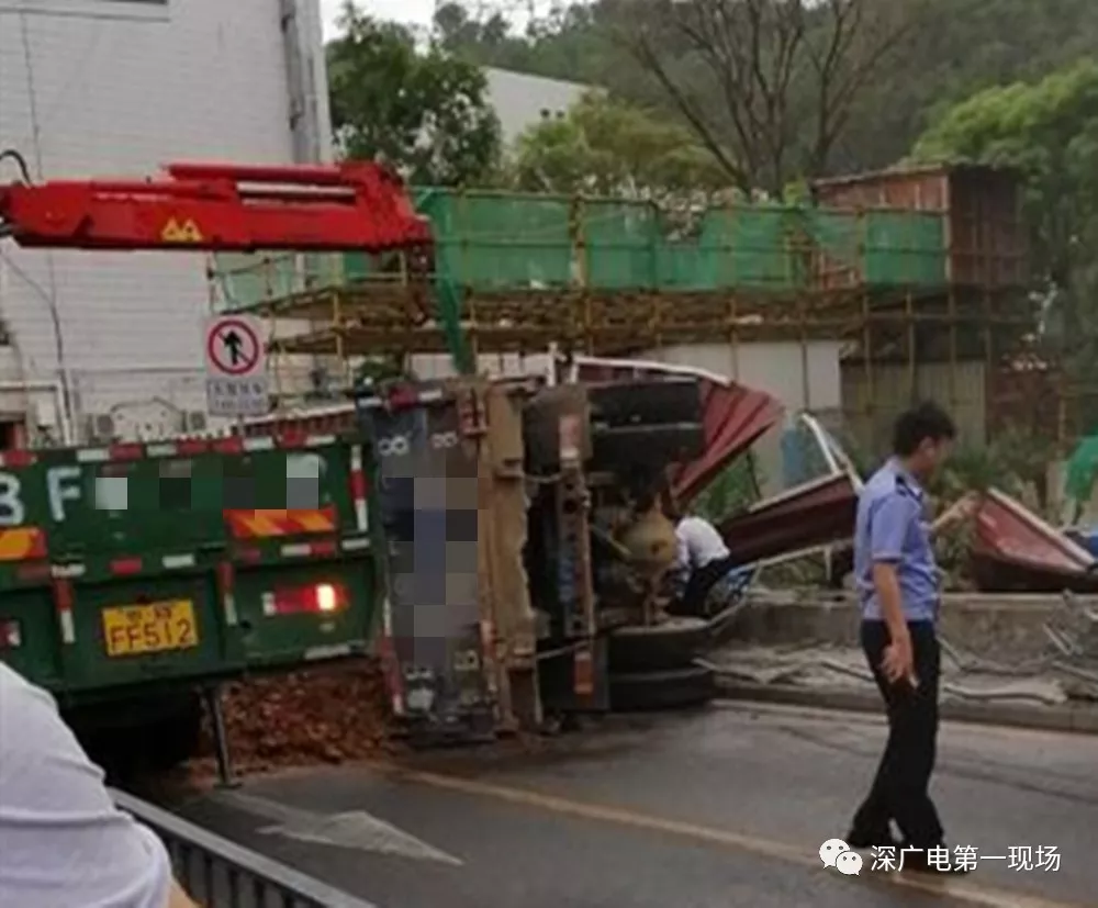 有現(xiàn)場目擊者表示這一次的側(cè)翻事故還造成了一名保安的腿部被壓,已被緊急送往醫(yī)院。