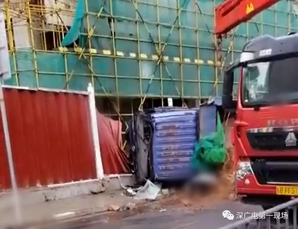 深廣電第一現(xiàn)場2019年5月5日訊 4日下午5點左右有觀眾在粉絲群爆料稱在深圳羅湖金湖路上從觀眾提供的現(xiàn)場視頻可以看到這輛渣土車的車頭已經(jīng)嚴重變形。