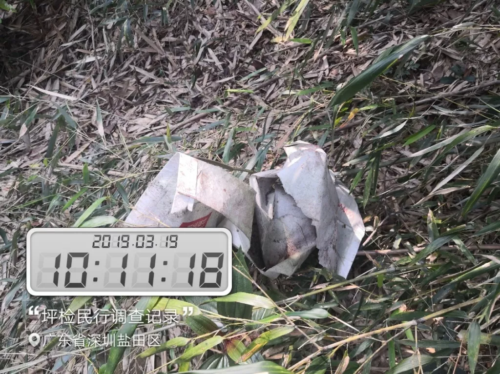 現(xiàn)場勘查時,竹林內(nèi)有數(shù)人正提著大編織袋、戴著手套在竹林中彎腰來回穿行采筍,路邊隨處可見積壓較厚的筍殼,以及丟棄的手套、編織袋、手提袋、礦泉水瓶等物。