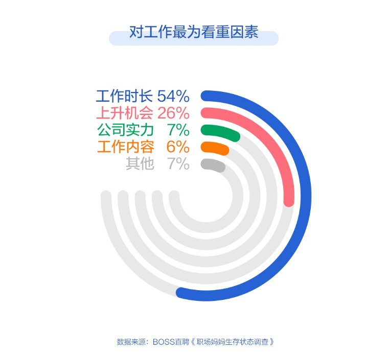 根據(jù) BOSS直聘發(fā)布的《2019職場媽媽生存現(xiàn)狀調(diào)查報告》,有65%的受訪職場媽媽認(rèn)為自己有潛在的抑郁傾向,逾八成媽媽對孩子感到愧疚,工作時長是職場媽媽在工作中最為看重的要素。一面是嗷嗷待哺的孩子,一面是苦心經(jīng)營的工作,事業(yè)與家庭的平衡或成職場媽媽焦慮的根源。