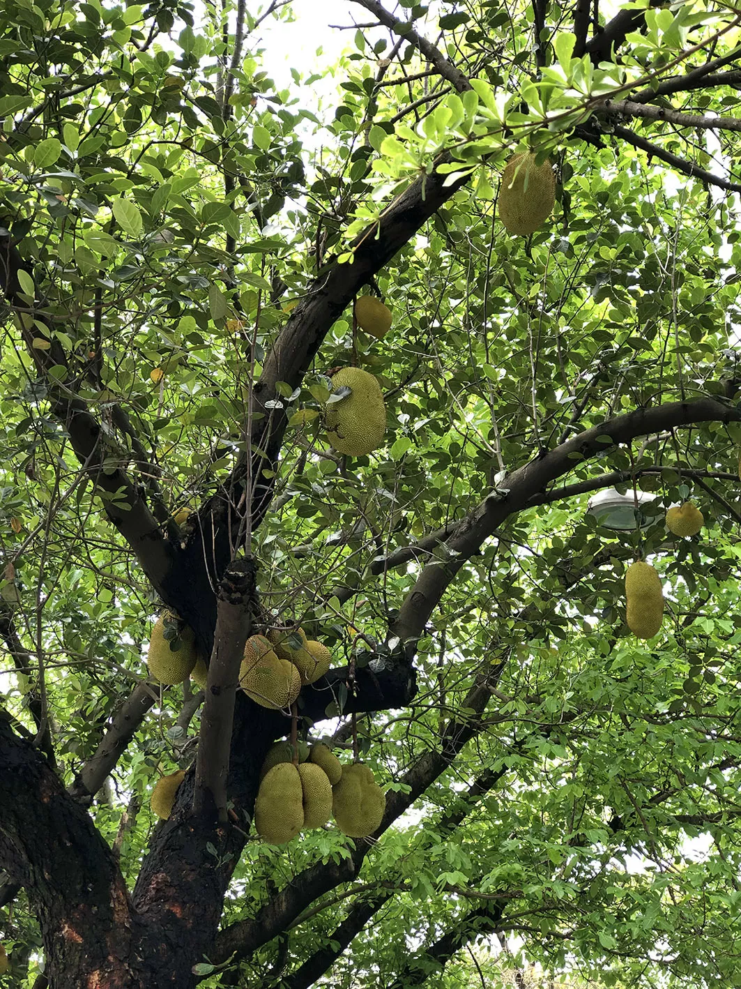 “哇,好大的菠蘿蜜!”不少路人經(jīng)過時,會抬頭看樹,發(fā)出嘖嘖稱奇的聲音。有路人表示,在深圳還是第一次看到,路邊成片種植著這么多菠蘿蜜樹,儼然成為菠蘿蜜樹路了。