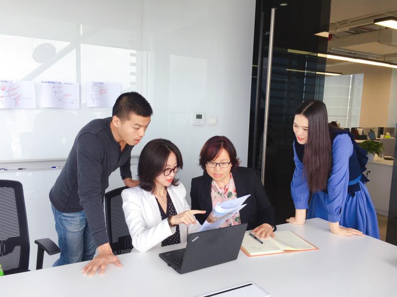 楊春梅和同事一起探討設(shè)計(jì)方案修改