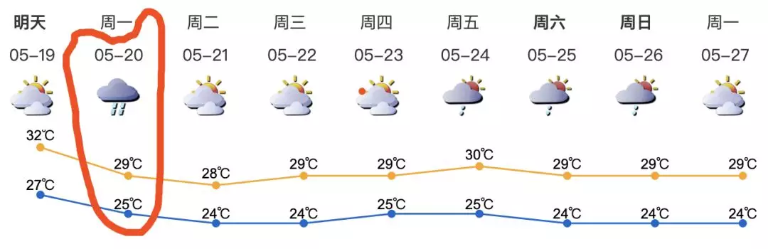 19日多云,局地有短時(shí)陣雨或雷雨,天氣悶熱;20日有一次明顯降雨過(guò)程,局部地區(qū)有暴雨,伴有雷暴大風(fēng)。21日起轉(zhuǎn)多云,氣溫略降↓,悶熱天氣緩解。