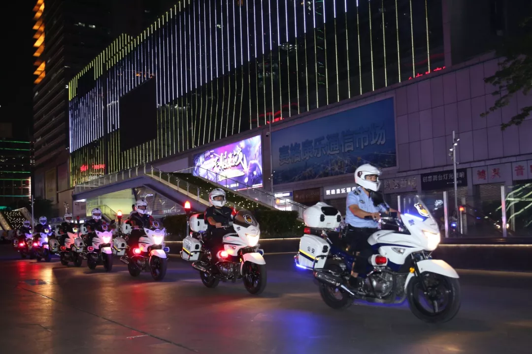 △華強(qiáng)北派出所民警在賽格廣場(chǎng)夜間巡邏。