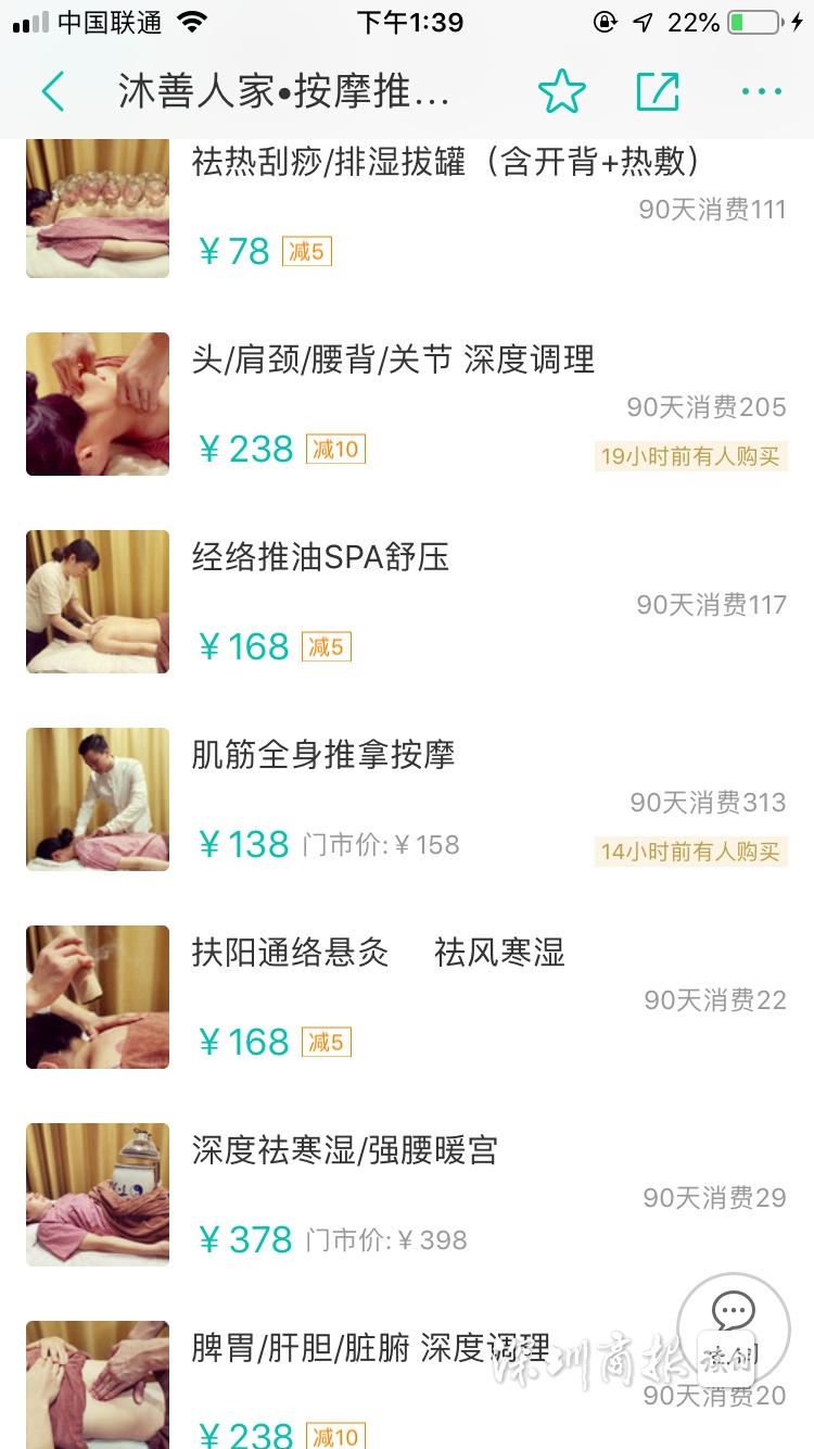 5月16日,55歲的劉女士通過美團(tuán)點(diǎn)評(píng)查詢,發(fā)現(xiàn)一家五星"足療按摩人氣商戶"。下午3時(shí)許,劉女士來到深圳市福田區(qū)沐善人家按摩艾灸養(yǎng)生館新洲店進(jìn)行按摩。