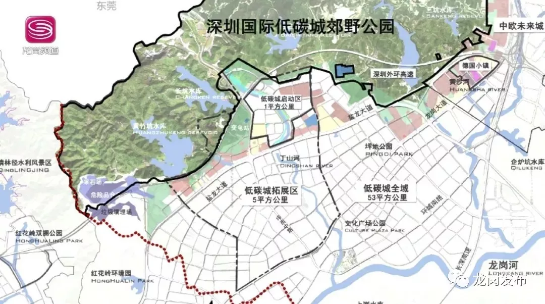 國際低碳城郊野公園項目位于國際低碳城北部區(qū)域,北側(cè)為東莞市,東北側(cè)為惠州市,占地15.18平方公里。