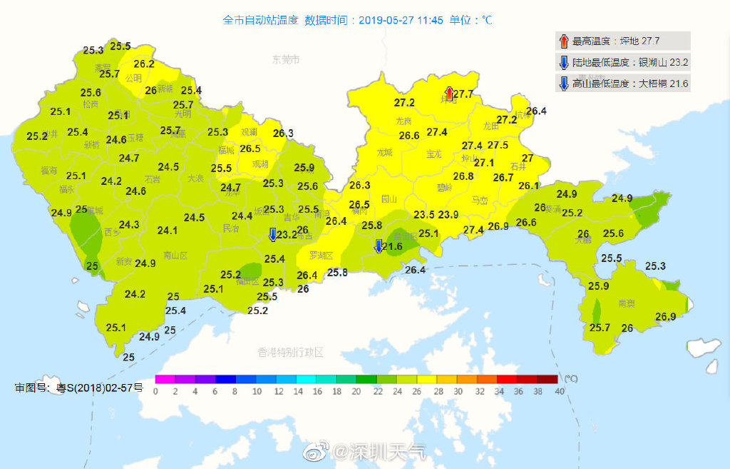 強降雨將趨于結束,深圳市氣象臺于2019年05月27日12時30分在全市取消暴雨黃色預警,預計今天白天仍有雷陣雨,部分時間雨勢較大,市民仍需注意遠離河道和危險邊坡等