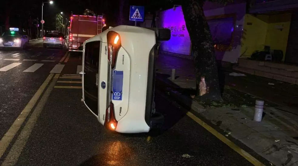 2019年5月21日凌晨4點,李某駕駛一輛粵B號牌的白色小車,在羅湖區(qū)黃貝路由東往西方向行駛,此時車少人稀,四下安靜,李某的困意逐漸興起。就在李某打瞌睡一瞬間,突然“嘭”的一聲巨響,不知怎的撞上路肩,導(dǎo)致車輛右前輪發(fā)生爆胎,隨后車輛失控迅速撞上路邊大樹,導(dǎo)致車輛當(dāng)場側(cè)翻!李某也被困車內(nèi)!