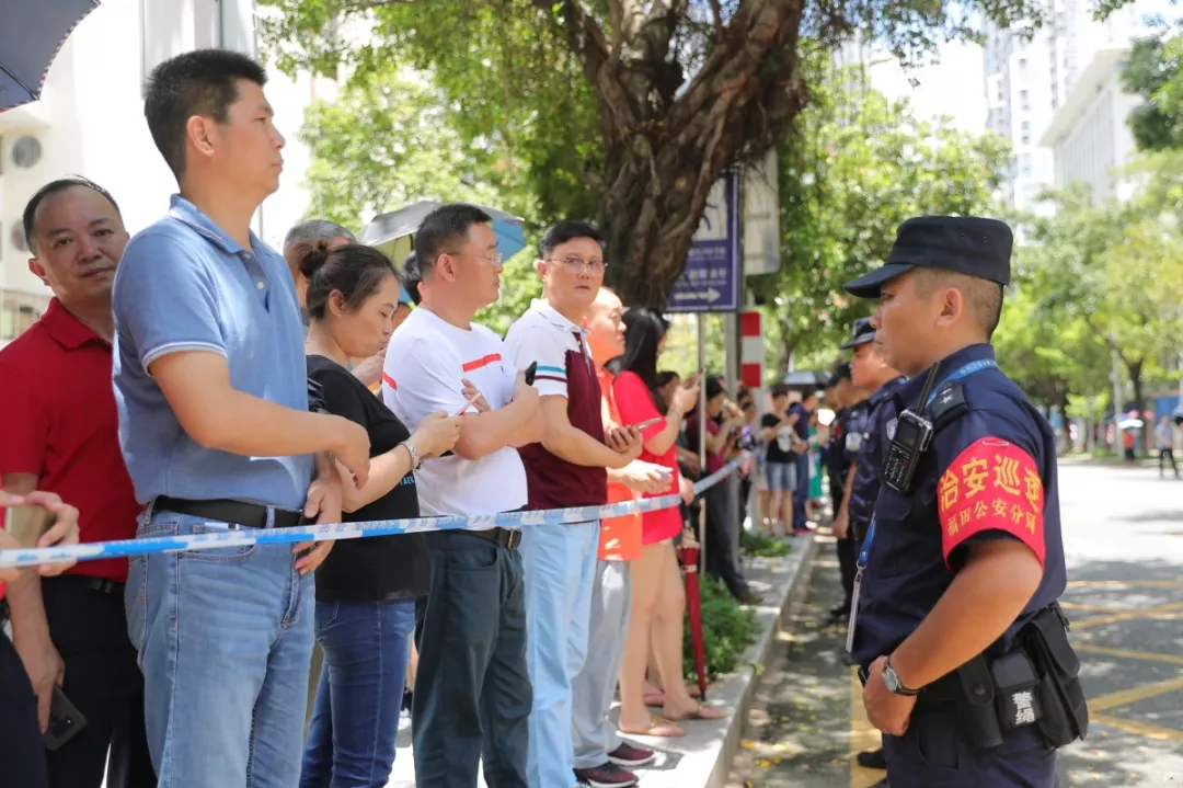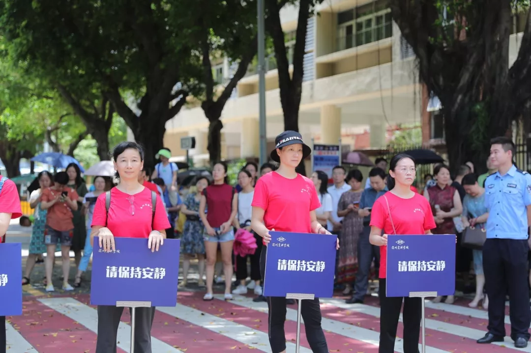 考試開始和結(jié)束時(shí),在深圳實(shí)驗(yàn)學(xué)校中學(xué)部的考場(chǎng)外,家長們自發(fā)組織的義工服務(wù)隊(duì)也正在有序地維護(hù)著考場(chǎng)外的秩序。通心嶺派出所積極與本次家長義工服務(wù)隊(duì)的成員溝通,在考試結(jié)束后散場(chǎng)時(shí)能夠快速緩解人流,保證考場(chǎng)周邊的秩序。