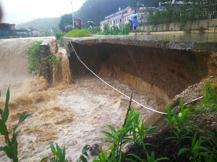 據縣氣象局發(fā)布氣象,截止到10日9時,龍川縣四都、龍母、田心、豐稔等鄉(xiāng)鎮(zhèn)降雨量已達100毫米以上,預計未來降雨仍持續(xù)。暴雨造成多個鎮(zhèn)受災,省道S227線豐稔段于10日清晨出現一處滑坡險情,導致交通堵塞,經全力搶險,于9時通車??h城低洼處多處發(fā)生水浸。