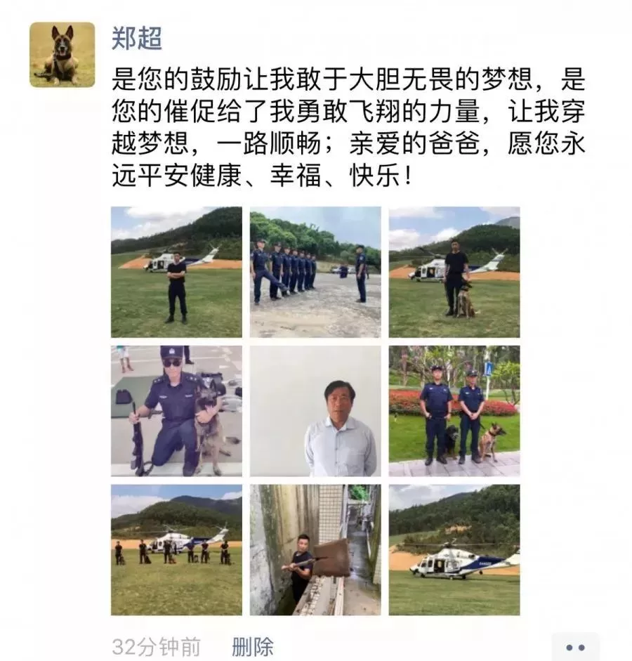 ▲機訓大隊輔警鄭超朋友圈