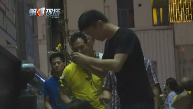 晚上7點(diǎn)30分,大家在有序組織下,排成一隊(duì),逐一走到花籃前,放下手中的鮮花,雙手合十,并鞠躬致意。