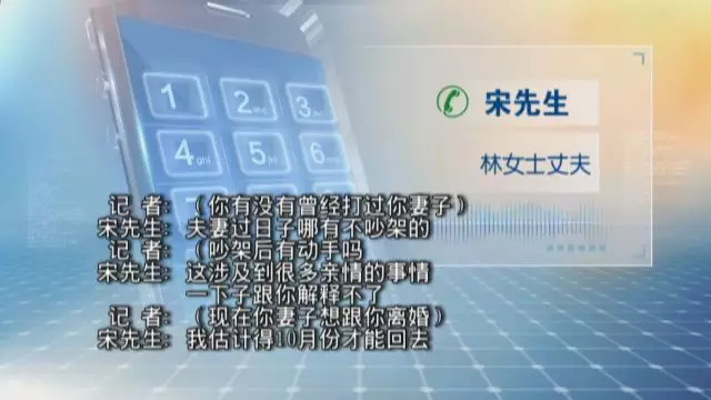 為了核實(shí)林女士的說法,記者撥通了林女士丈夫宋先生的電話。宋先生沒有承認(rèn)家暴事實(shí),回應(yīng)的是相當(dāng)“委婉”。