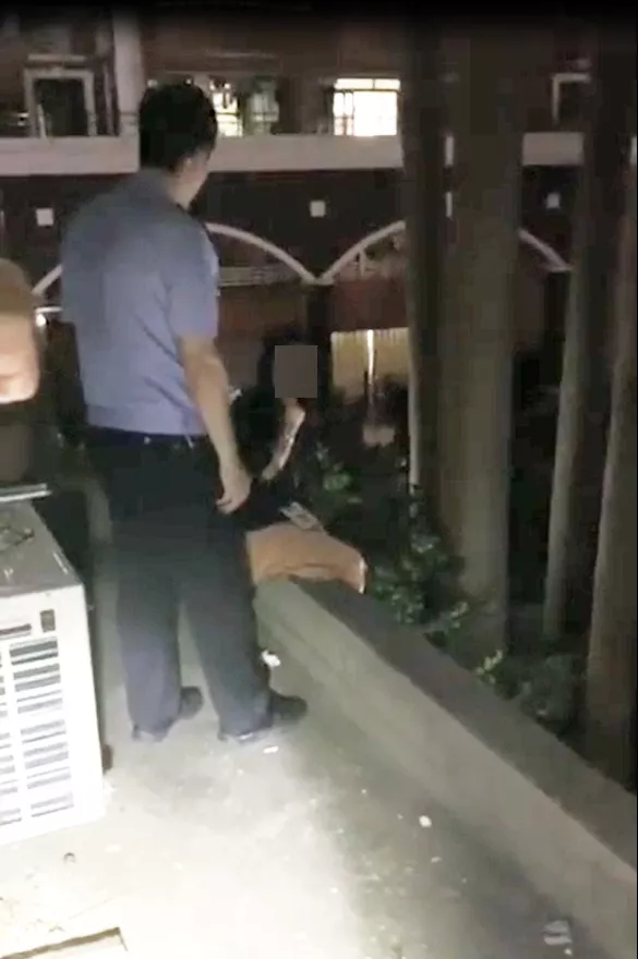關(guān)鍵時(shí)刻,劉智一個(gè)箭步上前,雙手迅速摟住兩名女子的脖子,身體往后倒,順勢(shì)把二人從屋檐上拉了下來(lái)。