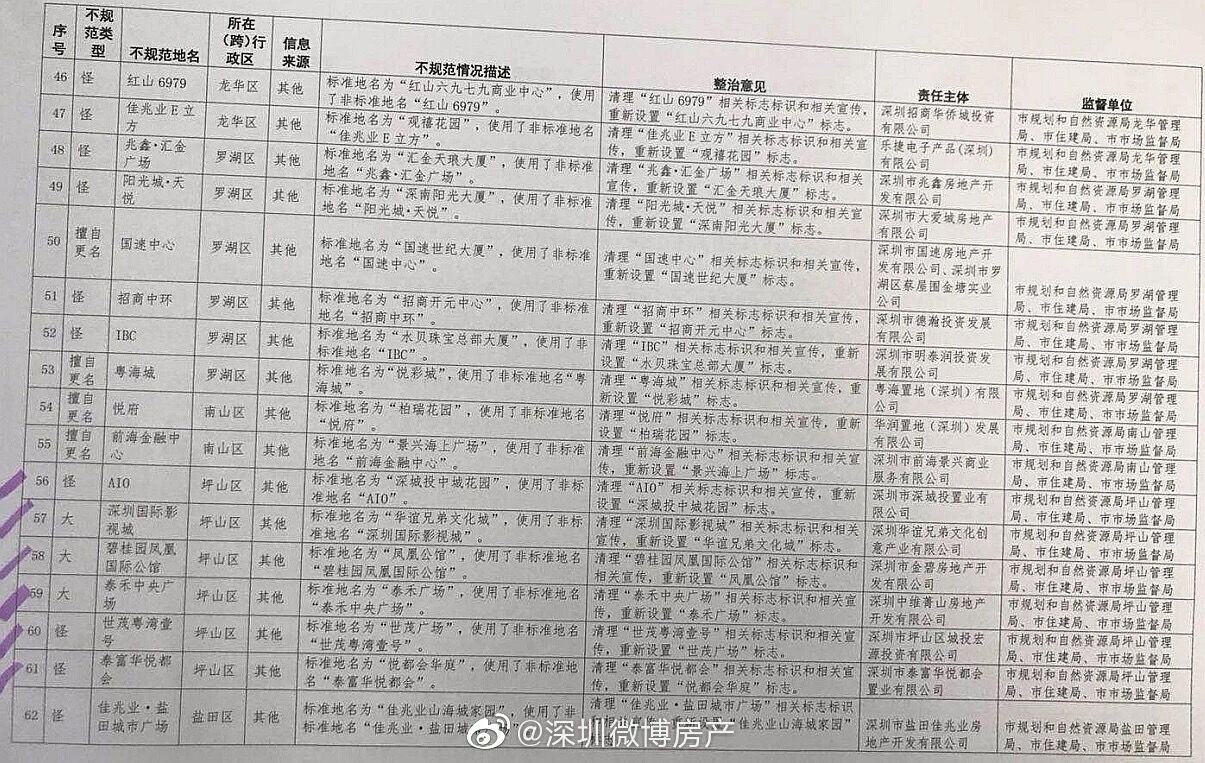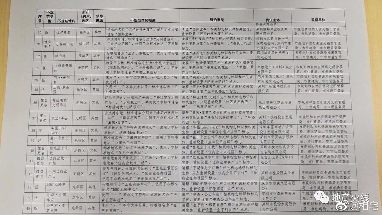 據(jù)了解,首批名單中,寶安是重災區(qū),共有24個在列;光明7個、龍崗坪山羅湖均為6個、龍華5個、福田4個、南山2個、鹽田和大鵬均為1個。