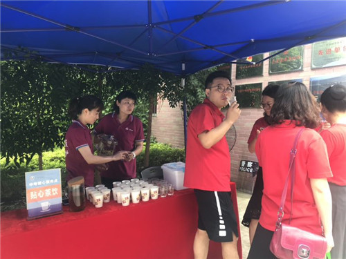 ▲深圳高級中學(xué)航天物業(yè)布置的中考愛心服務(wù)點(diǎn)