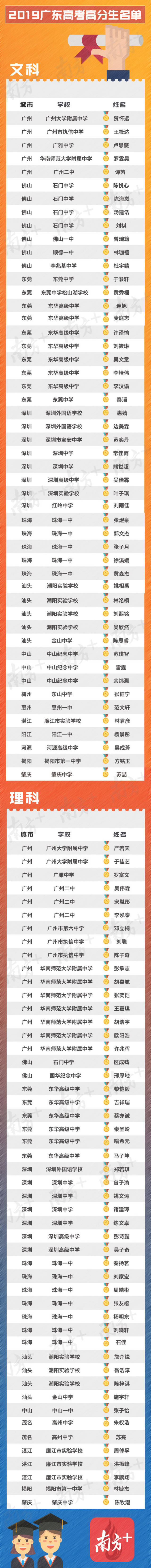 這些高分考生花落誰家?據(jù)統(tǒng)計,今年高考文理科前50名考生來自廣東15個地市的33所學校,其中珠三角地區(qū)除江門外,其他地市均有高分考生進入“100人名單”,地區(qū)分布更加均衡。
