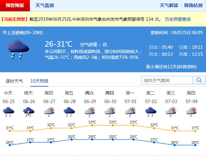 深圳新聞網(wǎng)2019年6月25日訊 昨日,深圳啟動暴雨IV級應急響應,全市普遍出現(xiàn)大雨,局部暴雨,最高氣溫26℃左右,高溫天氣緩解。市氣象臺預測,未來兩天風力清勁,多陣雨,局部大雨。