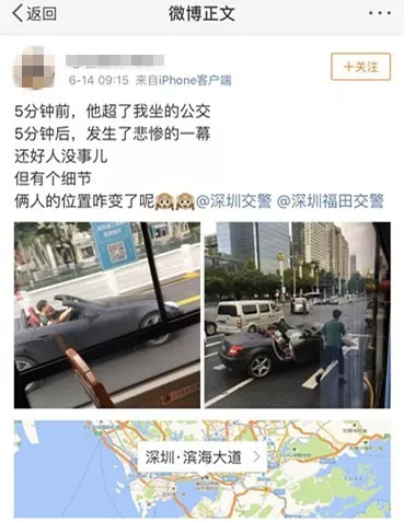 與此同時,深圳交警也發(fā)現(xiàn),有網友在微博上@深圳福田交警,稱自己在事故發(fā)生時目睹了現(xiàn)場情況。