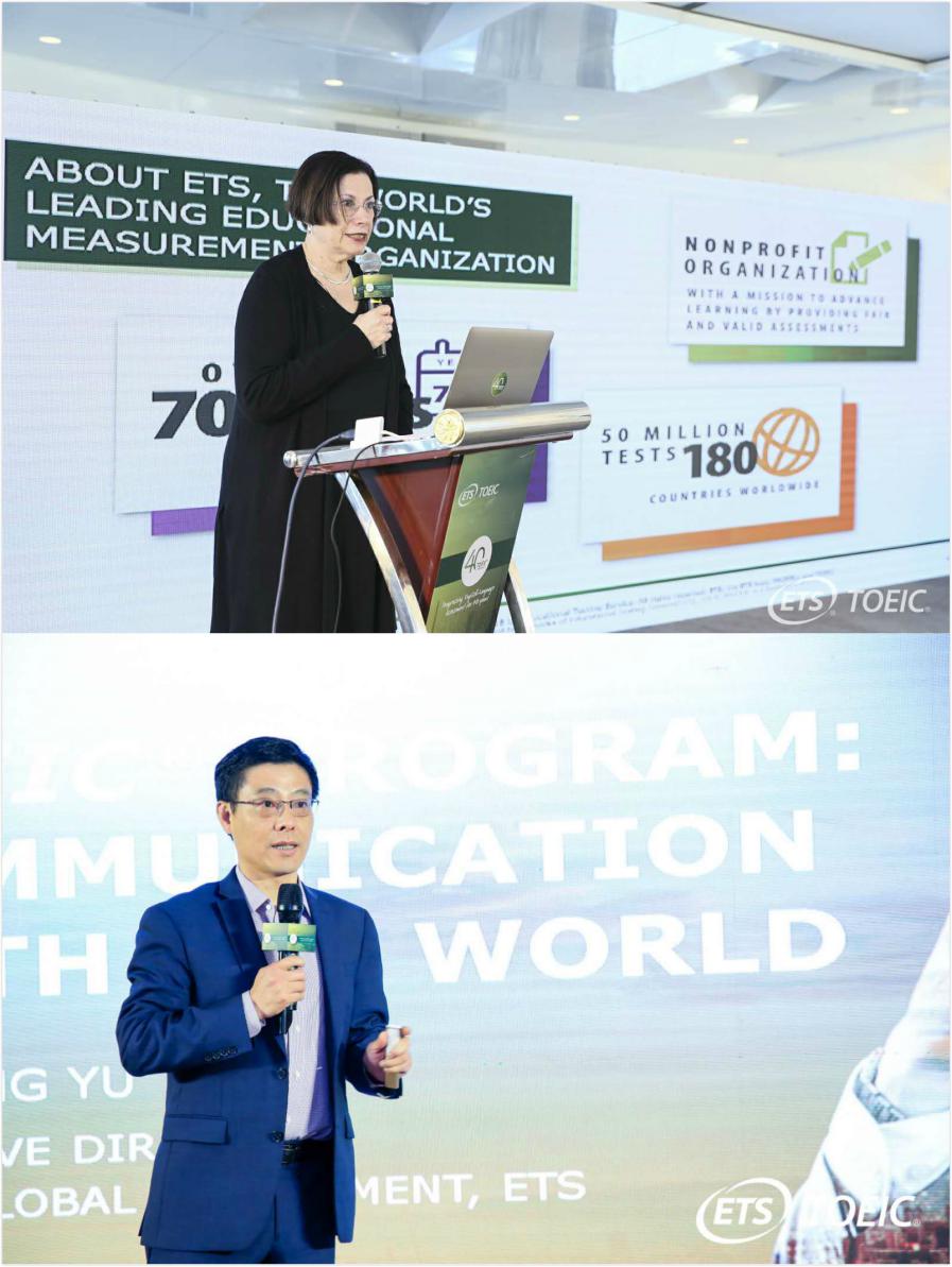 美國ETS國際部總經(jīng)理Shelly Punchatz、托業(yè)產(chǎn)品管理總監(jiān)余峰博士,代表ETS分別出席了上海站、深圳站慶典活動。在慶典活動中,兩位ETS總部高層回顧了TOEIC40年的卓越發(fā)展成就,以及助力全球多個(gè)國家及地區(qū)企業(yè)實(shí)現(xiàn)國際化發(fā)展的成功案例。他們表示,語言是架起經(jīng)濟(jì)和文化的橋梁,托業(yè)已成為全球應(yīng)用最廣泛、最具有含金量的商務(wù)和職業(yè)英語測評標(biāo)準(zhǔn)。在國際化的商務(wù)溝通中,TOEIC越來越成為企業(yè)不可或缺的合作伙伴。