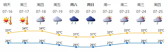 【深圳天氣趨勢】未來2-3天高溫天氣持續(xù):16-17日天氣炎熱至酷熱,偶有短時陣雨,最高氣溫33-35℃;18日天氣炎熱轉(zhuǎn)雷雨;19-21日降雨增多,部分時間雨勢較大。高溫黃色預警生效中,請做好防暑降溫、食品安全保障工作。