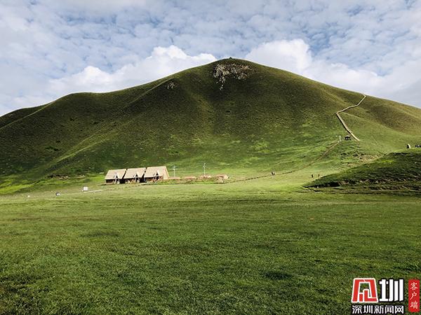次日早上起來(lái),見(jiàn)昆侖雪山近在咫尺,陽(yáng)光照射在雪山頂上,倍感圣潔耀眼。雪山下面是綠綠的草原,草原上羊兒成群,馬兒四處奔跑,加上白色的蒙古包點(diǎn)綴其中,風(fēng)景十分迷人。身在草原上周身舒暢,心情自然也明朗起來(lái)。一條木制棧道沿山而上,像條長(zhǎng)龍盤(pán)旋在山上,登高望遠(yuǎn),風(fēng)景如畫(huà)。