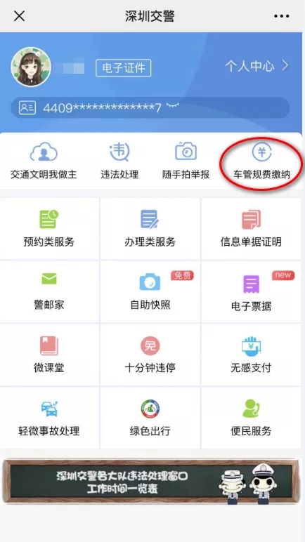 01 車主本人/代辦人關注【深圳交警】微信公眾號,點擊進入【星級用戶】,注冊登錄星級用戶后,在頁面選擇【車管規(guī)費繳納】。