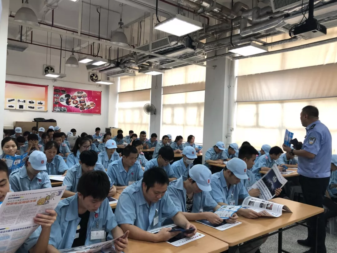 同時(shí),反詐騙教育學(xué)院公開課走進(jìn)梅林派出所轄區(qū)成豐電子廠,由反詐騙教育學(xué)院專職講師為廠里近500位員工普及反詐知識,并且組織工友們閱讀反詐騙教育學(xué)院??岣咚麄兊姆丛p騙意識。