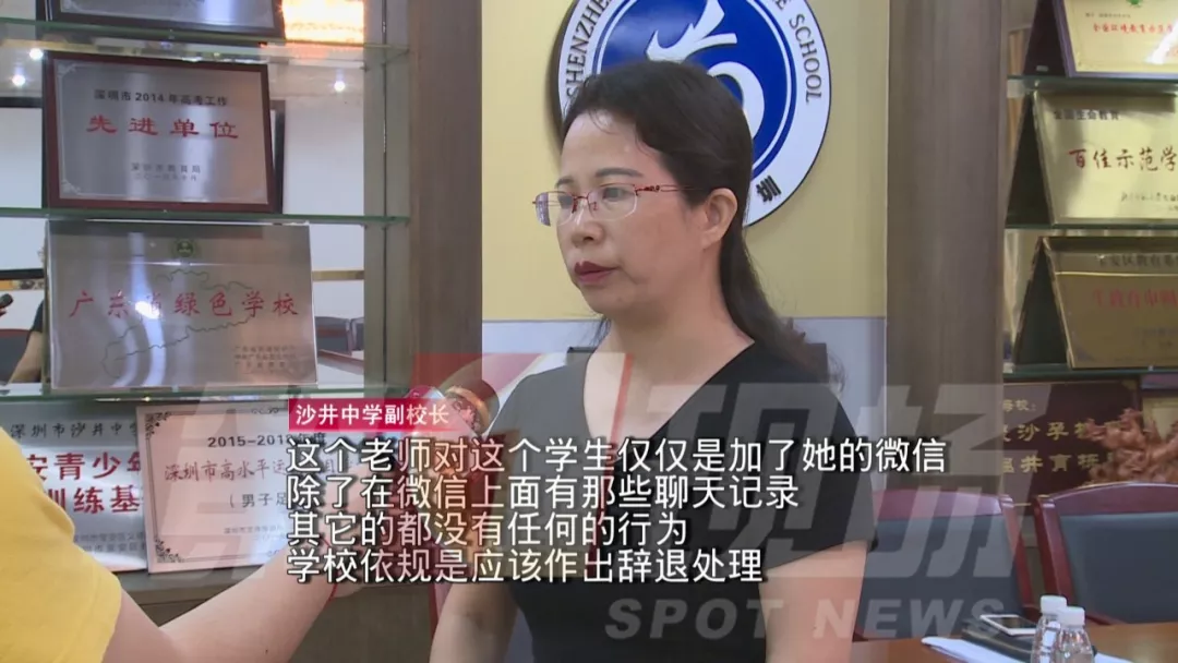 為詳細(xì)了解實(shí)際情況,記者來到了李先生女兒就讀的沙井中學(xué),學(xué)校的副校長出面回應(yīng)稱,李先生反映的老師騷擾他女兒的情況確實(shí)存在,當(dāng)事人屬于臨聘教師,去年9月到該校任教,目前已經(jīng)被校方開除。