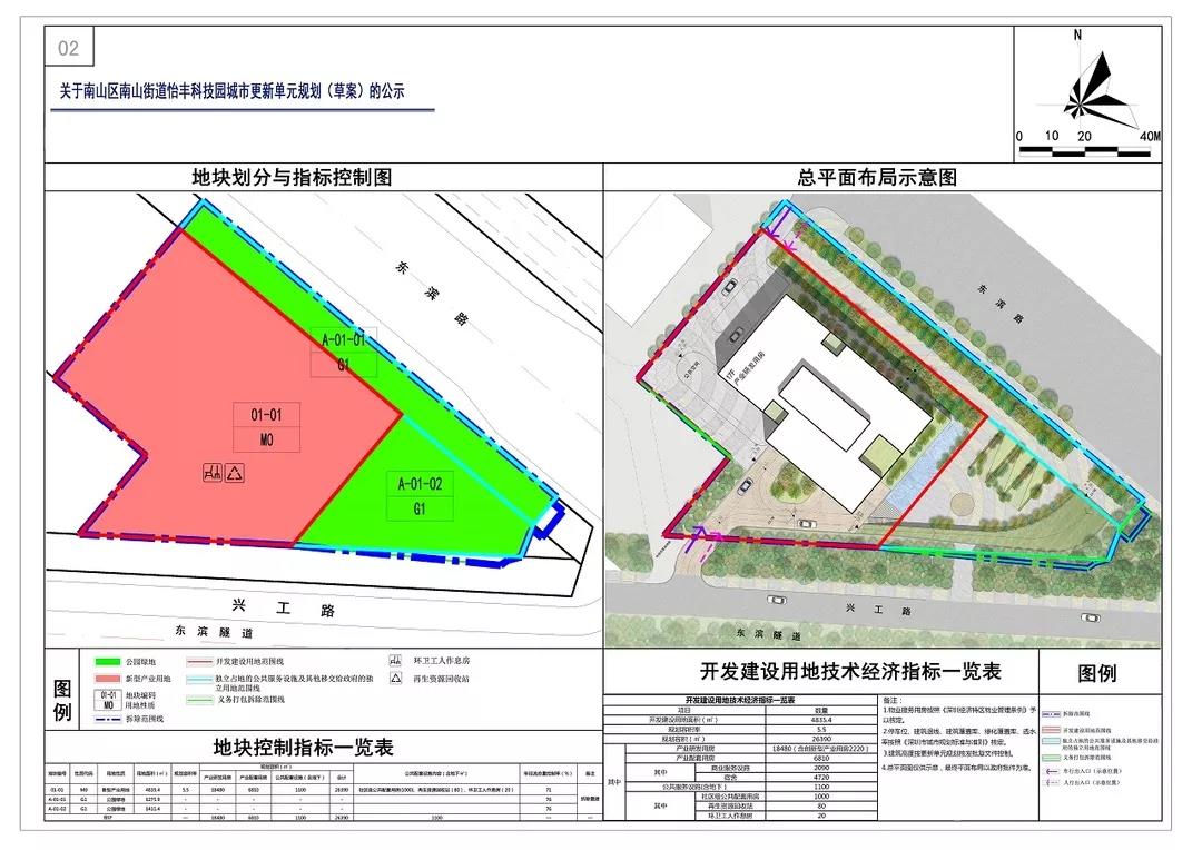 怡豐科技園城市更新單元規(guī)劃(草案)的公示總平面布局示意圖。