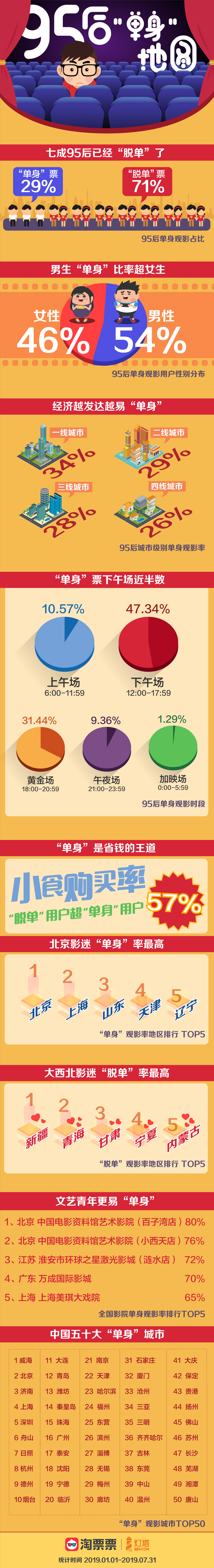 見圳客戶端·深圳新聞網(wǎng)2019年8月7日訊(見圳客戶端、深圳新聞網(wǎng)記者 陳婕)七成95后已經(jīng)“脫單”了、經(jīng)濟(jì)越發(fā)達(dá)地區(qū)“單身”率越高,北京、上海、山東成最“單身”地區(qū)……七夕來臨之際,用戶觀影決策平臺(tái)淘票票和燈塔專業(yè)版聯(lián)合發(fā)布了針對(duì)觀影人群的《95后“單身”地圖》,以“單身”觀影的維度,去側(cè)面觀察時(shí)下年輕人的情感狀態(tài)。