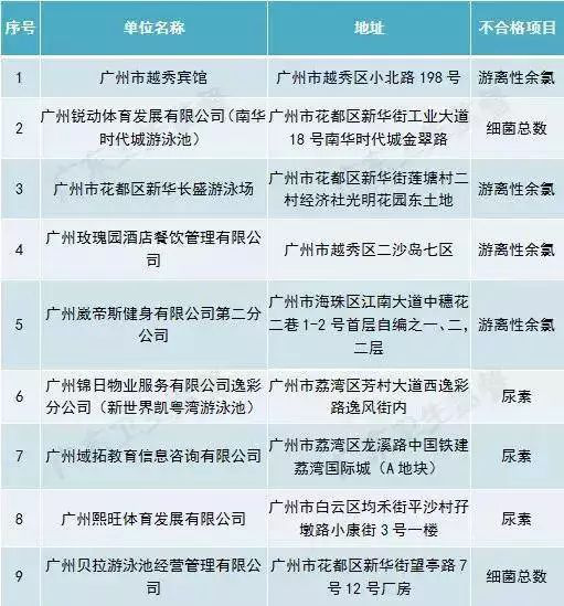 廣東省部分城市游泳場所水質(zhì)抽檢不合格場所名單(第一批)