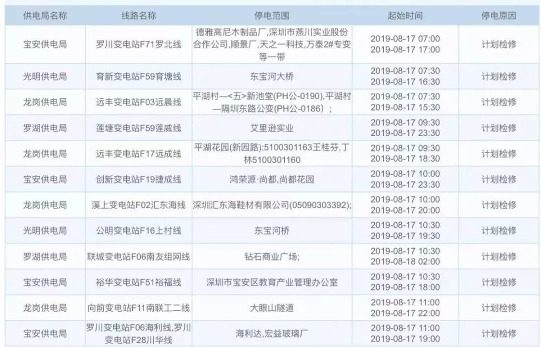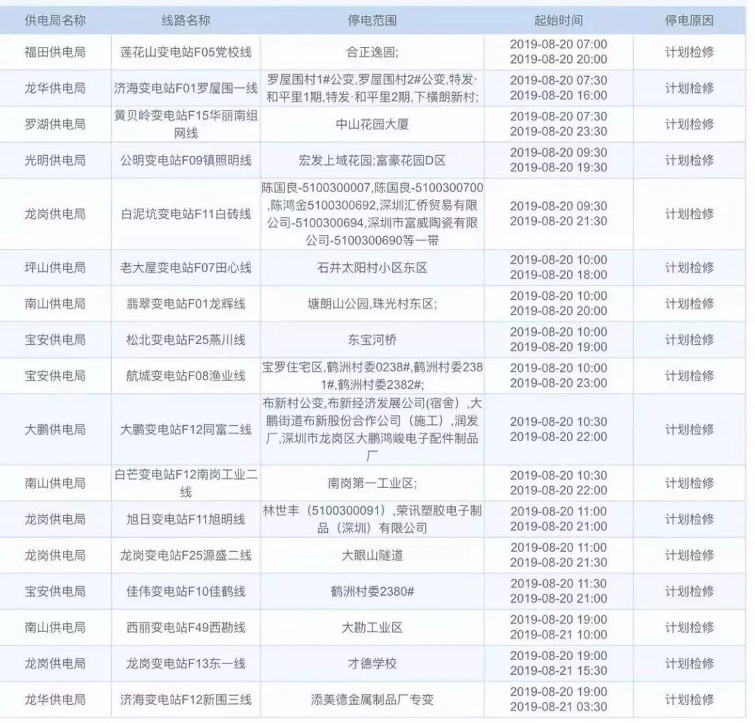 南方電網(wǎng)說,一周內(nèi)下面這些地方計劃停電