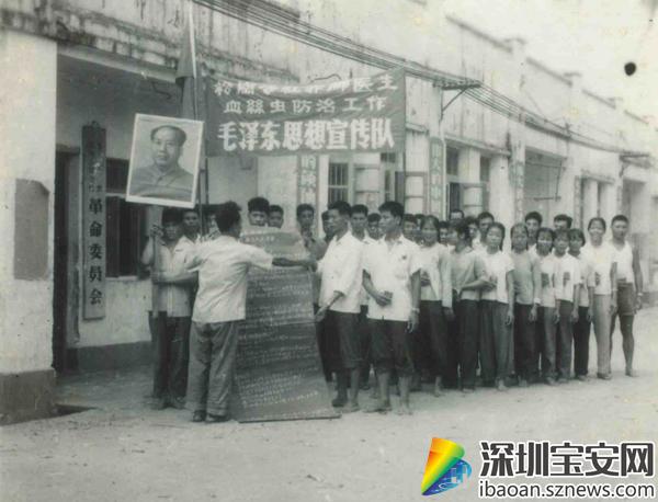 一張泛黃的老照片中,大多數(shù)人物都處在風(fēng)華正茂的年齡,赤著腳,舉著宣傳的橫幅,為血絲蟲病防治工作進行宣傳,生動地再現(xiàn)了“赤腳醫(yī)生”年代傳染病高居不下,生活艱苦不易,缺醫(yī)少藥的場景。盡管當(dāng)時的醫(yī)療設(shè)備十分簡陋,除了一個藥箱,幾片普通的藥片,一支針筒,幾塊紗布,別的就少得可憐。可再苦再難,這些赤腳醫(yī)生們,仍是盡職盡責(zé),滿腔熱情地為人民服務(wù)。