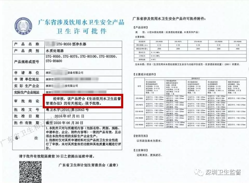 4.相關設備及濾芯應持有衛(wèi)生許可批件