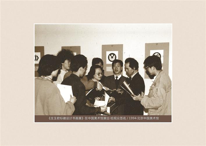 1994年4月,《莊玉君標(biāo)徽設(shè)計書畫展》在北京中國美術(shù)館舉辦。我希望借此展覽,讓更多的人了解標(biāo)徽設(shè)計藝術(shù),推動它更好地發(fā)展,同時也是告訴大家,我設(shè)計的標(biāo)徽借鑒了中國的書法、中國的傳統(tǒng)文化,形成的是當(dāng)代具有中國文化內(nèi)涵的標(biāo)徽。