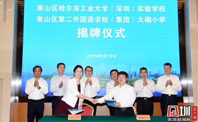 王強強調,黨中央、國務院賦予深圳先行示范區(qū)的使命,對教育事業(yè)發(fā)展提出了新的要求。南山作為深圳的教育高地,肩負著更加崇高的使命和社會各界更高的期盼。他希望,作為國家“985工程”建設高校和“雙一流”建設 A類高校的哈工大(深圳)能充分發(fā)揮豐富的資源優(yōu)勢和卓越的工科特色,與南山區(qū)精誠合作,將哈工大實驗學校打造成特色顯著、群眾滿意的現(xiàn)代化優(yōu)質品牌學校,在優(yōu)化合作辦學模式的道路上做好先行示范;希望南二外集團能集聚集團智慧力量,全面推進具有80多年辦學歷史的大磡小學內涵發(fā)展,在提升集團化治理效能方面做好先行示范。
