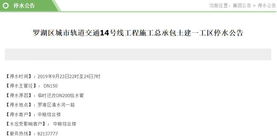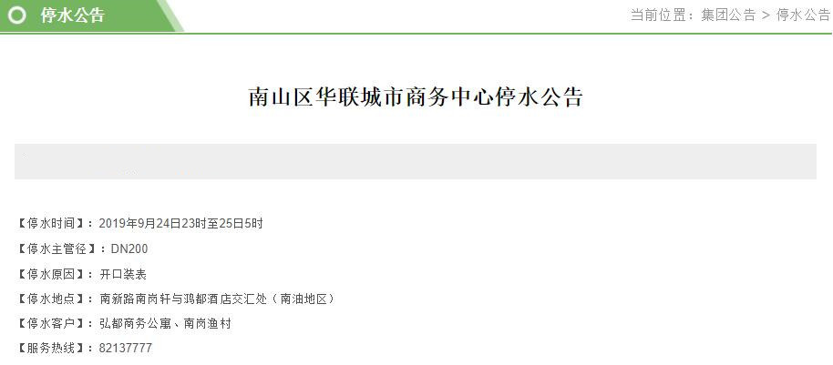 見圳客戶端?深圳新聞網2019年9月22日訊 近日,深圳水務集團官網陸續(xù)發(fā)布停水公告。深圳新聞網記者了解到,9月23-24日,福田、南山、羅湖等區(qū)的多個小區(qū)和企業(yè)單位將受影響,請市民提前做好儲水準備。