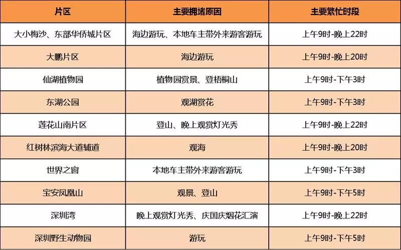 市內(nèi)交通除大鵬和鹽田區(qū)較平日有所上升外,其余各區(qū)均較平日車流減少30%左右。假日期間車流將集中在非上下班高峰的時(shí)間段。