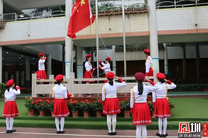 9月30日上午8點(diǎn)整,隨著主持人一聲“出旗”,校國旗護(hù)衛(wèi)邁著整齊而堅(jiān)定的步伐,護(hù)送五星紅旗走向升旗臺。深圳市南山區(qū)前海小學(xué)舉行“誦經(jīng)典華章,迎祖國華誕”主題國旗下展演活動?;顒佑伤模?)繽紛中隊(duì)、大隊(duì)部組織策劃。