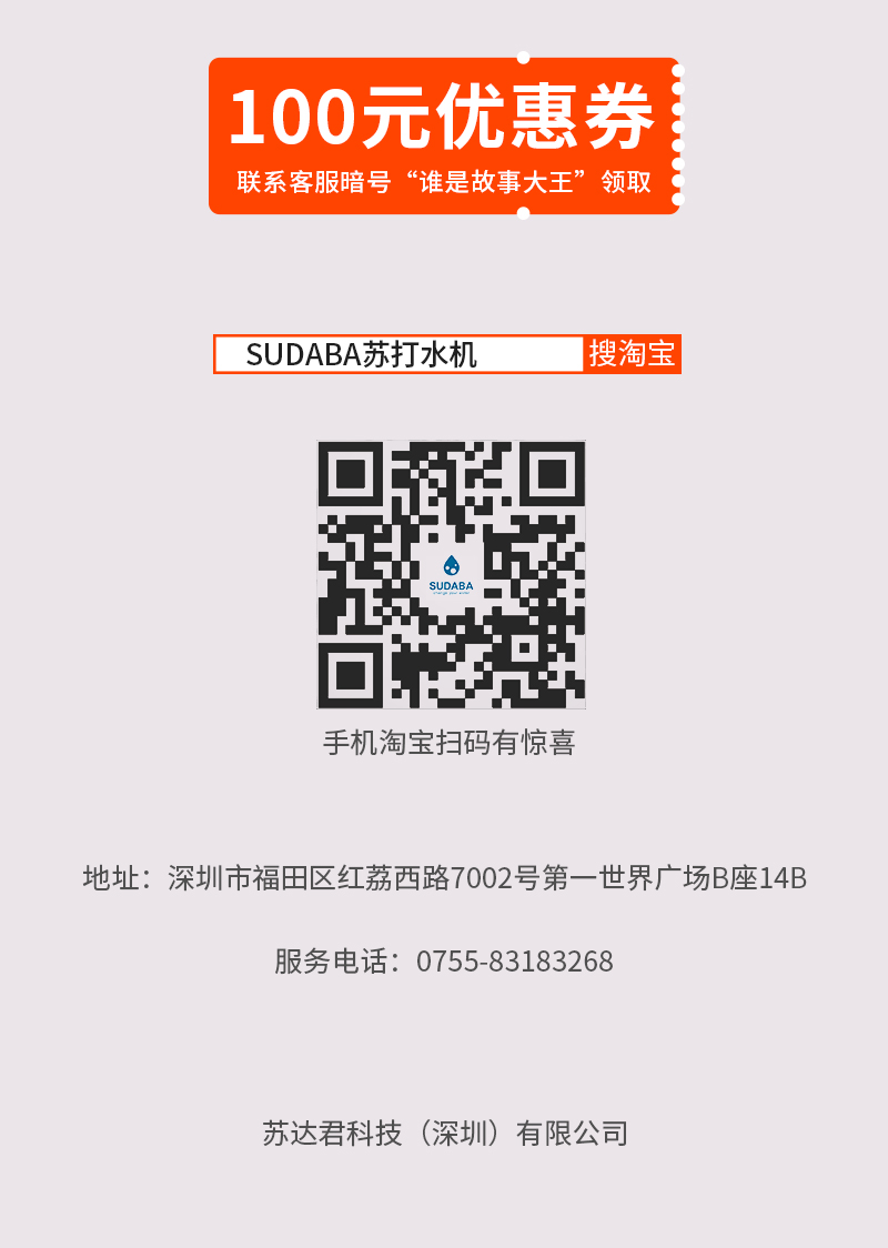 作為“誰(shuí)是故事大王”活動(dòng)的指定自制蘇打水專用產(chǎn)品,蘇達(dá)君科技將為晉級(jí)決賽的每位選手提供價(jià)值298元的 SUDABA蘇達(dá)吧蘇打水機(jī)一臺(tái),鼓勵(lì)小選手們?cè)谖枧_(tái)上展現(xiàn)風(fēng)采,獎(jiǎng)勵(lì)小“故事大王”們的優(yōu)異表現(xiàn)。