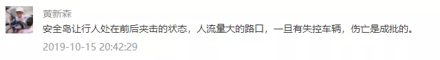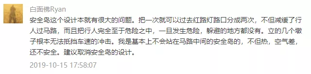 安全島絕對(duì)安全么,顯然不是。事實(shí)上,設(shè)置安全島的初衷是為了提升行人過(guò)街效率和道路利用率,它是適應(yīng)越來(lái)越寬的城市道路,在行人與車之間尋求通行效率最大化的產(chǎn)物。以10月15日的車禍為例,面對(duì)動(dòng)能巨大的奔馳越野車,哪怕是修一堵高墻恐怕也難阻擋。因此,所謂安全島,只能做到相對(duì)安全,而非不可逾越的屏障。