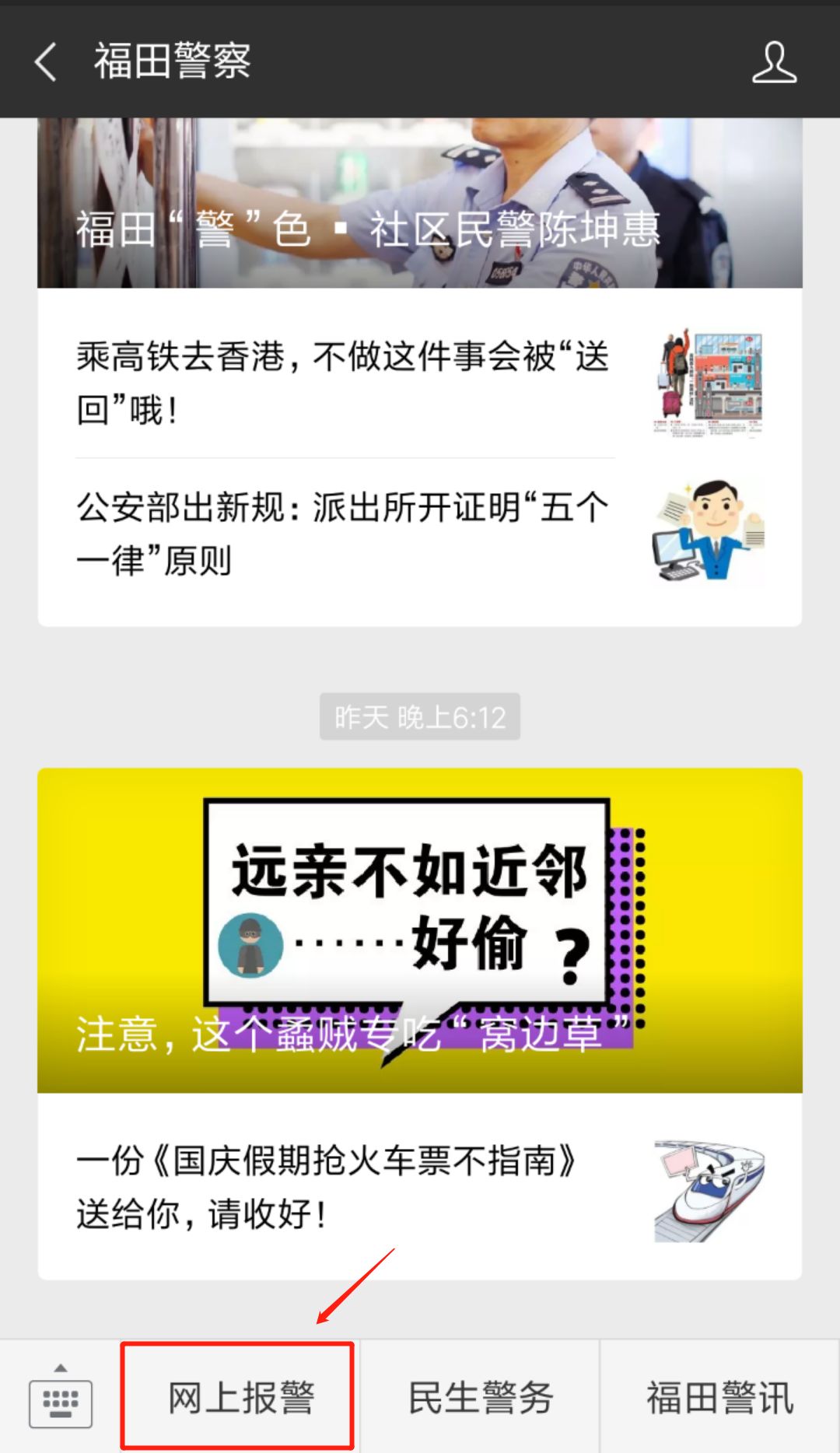 1 關(guān)注“福田警察”微信公眾號(hào)