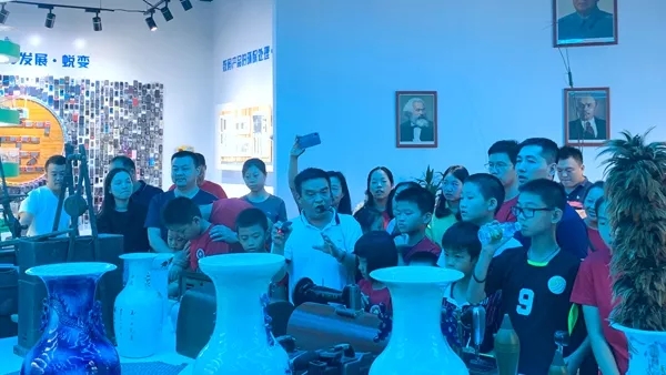 再生資源回收創(chuàng)意館也吸引了街道社區(qū)、環(huán)衛(wèi)工人、青少年等各界人士前來參觀。10月20日下午,來自光明區(qū)馬田街道的50余名退伍軍人及其子女來到寶安區(qū)松崗街道再生資源回收創(chuàng)意館參觀,對(duì)各類從未見過的電子產(chǎn)品好奇心滿滿,對(duì)每一樣展品都充滿興趣。他們興致勃勃地聽李一航講解電子產(chǎn)品的發(fā)展歷史與再生資源回收的重要意義,特別是當(dāng)他們?cè)谥笇?dǎo)下使用民國時(shí)期的手搖式發(fā)電機(jī)成功為現(xiàn)在的音樂播放器供電時(shí),更是覺得不可思議,紛紛驚嘆“我們是不是穿越了?”