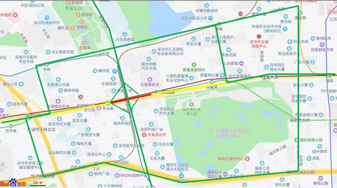 深南大道西往東方向過境車輛,建議通過廣深高速竹子林立交轉(zhuǎn)濱河大道或農(nóng)林路轉(zhuǎn)紅荔路繞行。深南大道東往西方向過境車輛,建議通過新洲路轉(zhuǎn)濱河大道,或新洲路、香梅路轉(zhuǎn)紅荔路繞行。
