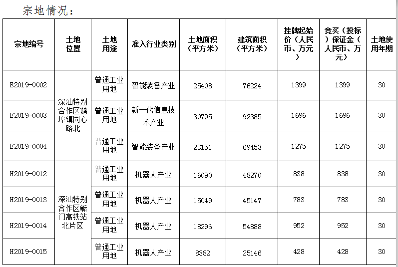 當天,深圳市土地房產(chǎn)交易中心發(fā)布公告,受深圳市規(guī)劃和自然資源局深汕管理局委托,將以掛牌方式公開出讓位于深汕特別合作區(qū)的E2019-0002等7宗地使用權(quán)。掛牌期自2019年11月25日起至2019年12月4日15時止。宗地情況如下: