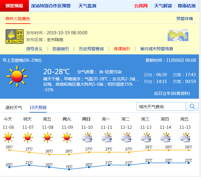 見(jiàn)圳客戶端·深圳新聞網(wǎng)2019年11月6日訊 近幾日,深圳天氣早晚清涼,持續(xù)干燥。據(jù)“深圳天氣”官方微博消息,今天(11月6日),深圳晴天干燥;氣溫20-28℃;東北風(fēng)2-3級(jí);相對(duì)濕度35%-55%。