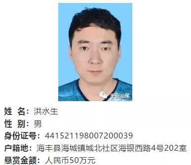 汕尾市公安局于11月11日發(fā)布的通告中,共有3人被懸賞通緝,分別是鄭海田(金額100萬(wàn))、唐偉杰(金額100萬(wàn))、洪水生(金額50萬(wàn))。