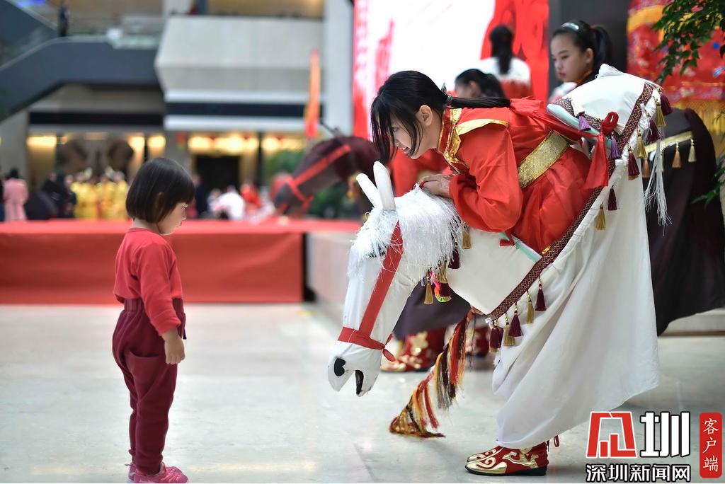 2019年2月19日,福田區(qū),農(nóng)歷春節(jié)剛過(guò),一位小女孩好奇的看著準(zhǔn)備表演“紙馬舞”的演員。