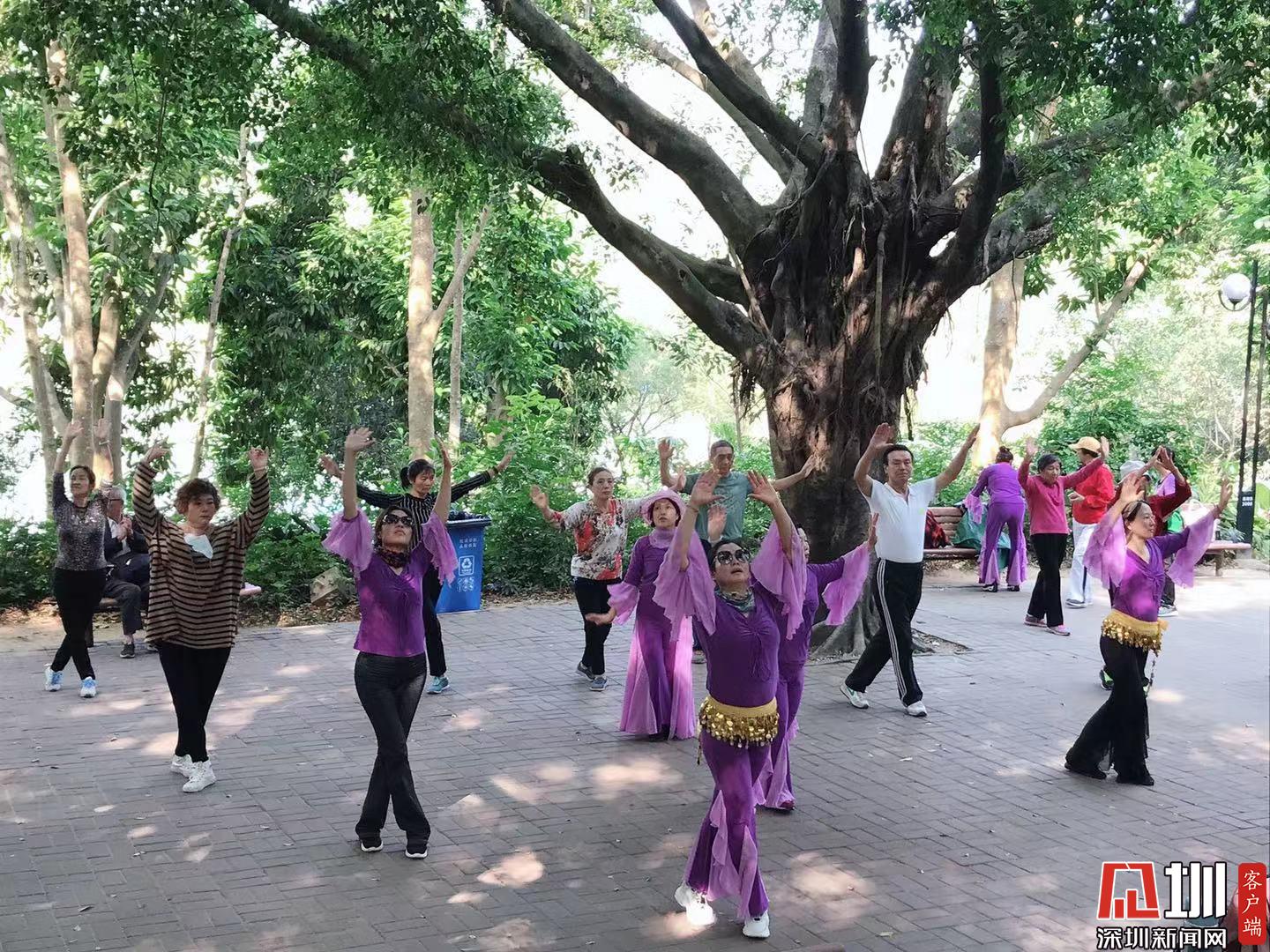 市民在蓮花山集體晨練,秩序井然,文明運(yùn)動。